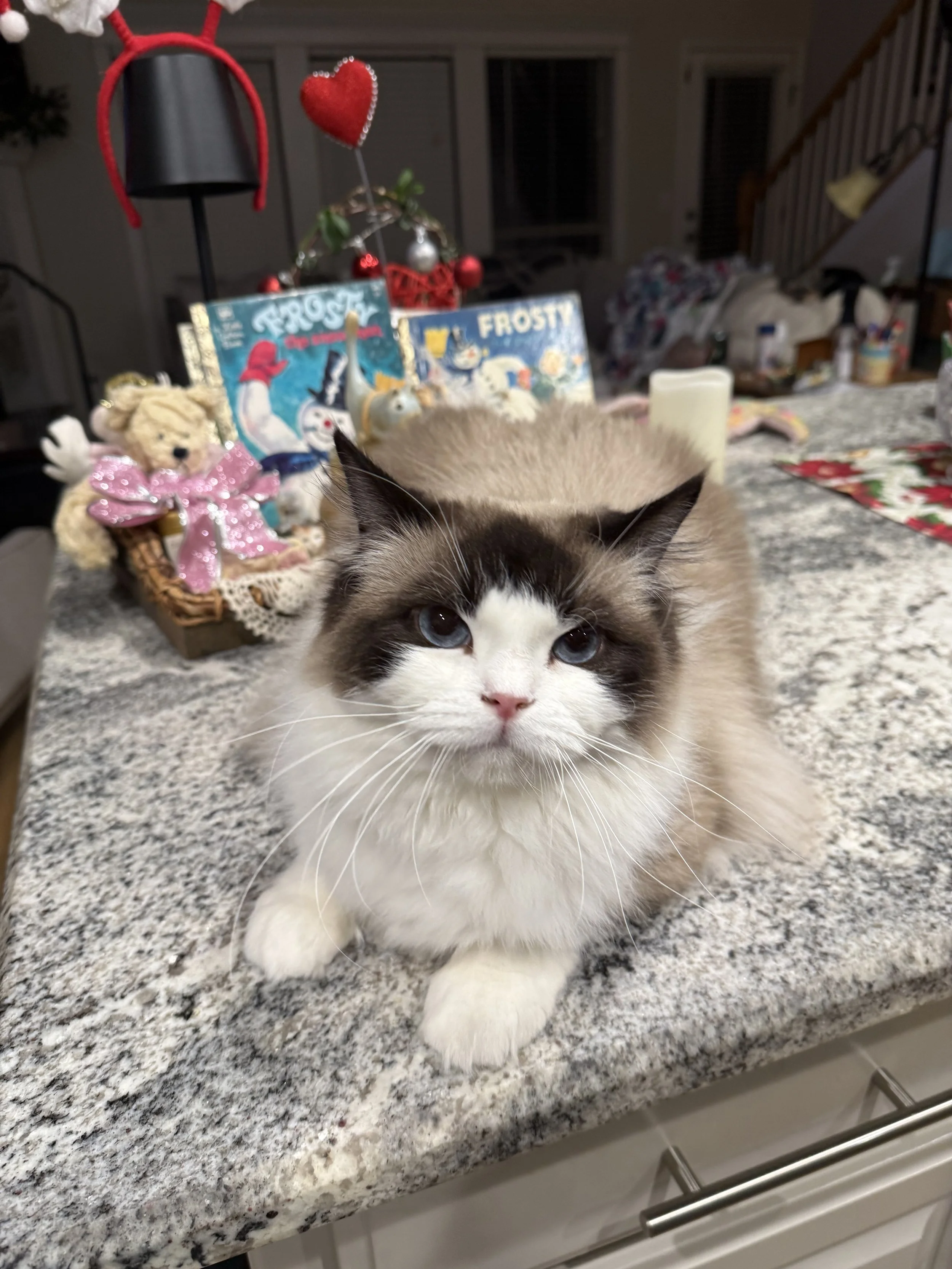 /Mari Sunshine has been a dedicated and accomplished queen who took her role very seriously in our cattery. While she has been more reserved here, this is very common in retiring queens, and we fully expect her personality to continue to blossom once she is in a quiet, one-on-one forever home. Mari is calm, observant, and does best with patience as she settles in, with the potential to become more affectionate as she relaxes into retired life.